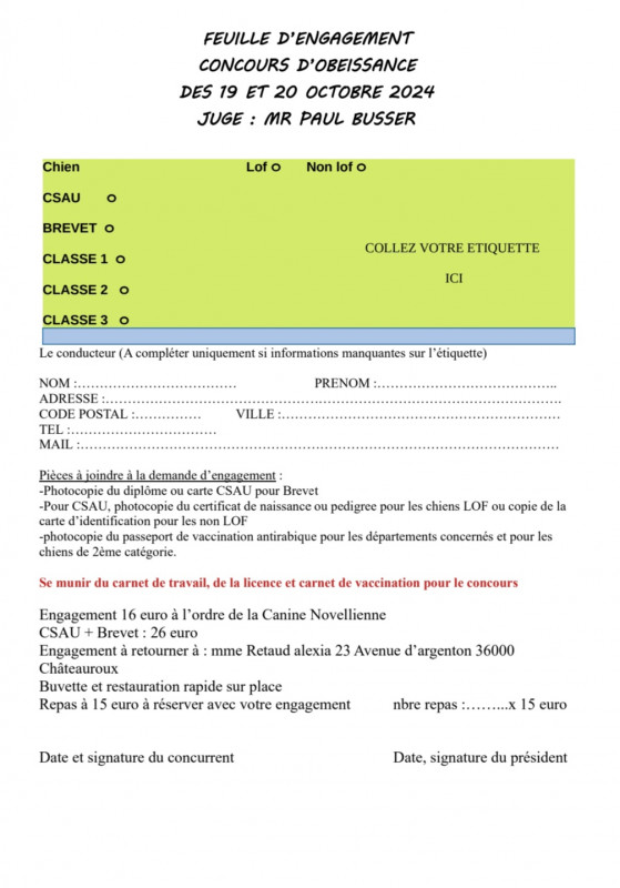 N'hésitez pas à vous inscrire à notre concours des 19 et 20 Octobre 2024 qui sera jugé par Mr Paul Busser.